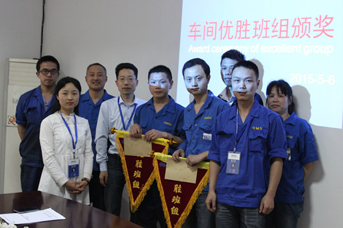 5月6日下午,在公司培訓(xùn)中心舉行了第一次車間優(yōu)勝班組頒獎(jiǎng)典禮,由公司副總李金偉給優(yōu)勝班組代表頒獎(jiǎng)。下圖為頒獎(jiǎng)儀式現(xiàn)場(chǎng)相關(guān)人員合影。