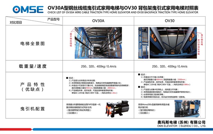 下圖為OV30A新一代復(fù)合鋼絲線纜曳引式家用電梯與OV30背包架曳引式家用電梯在設(shè)計(jì)結(jié)構(gòu)上以及產(chǎn)品特性上的對(duì)照表。