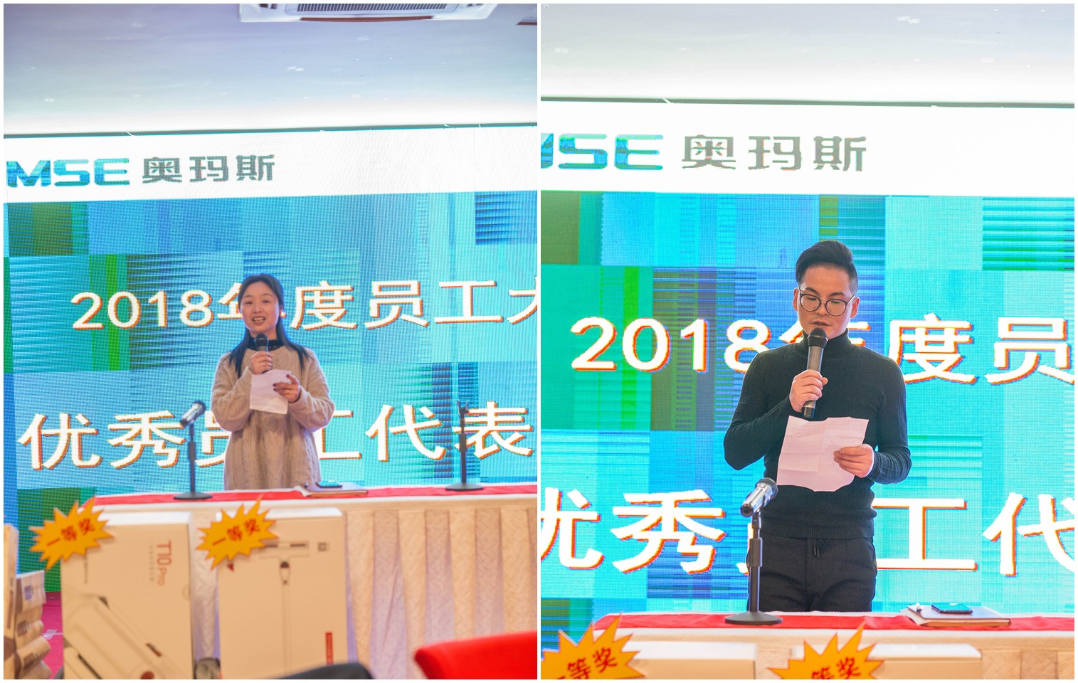 最后,由沈麗芬與張建新2位優(yōu)秀員工代表分別作為奧瑪斯老員工、新員工之代表上臺(tái)發(fā)表了個(gè)人獲獎(jiǎng)感言。