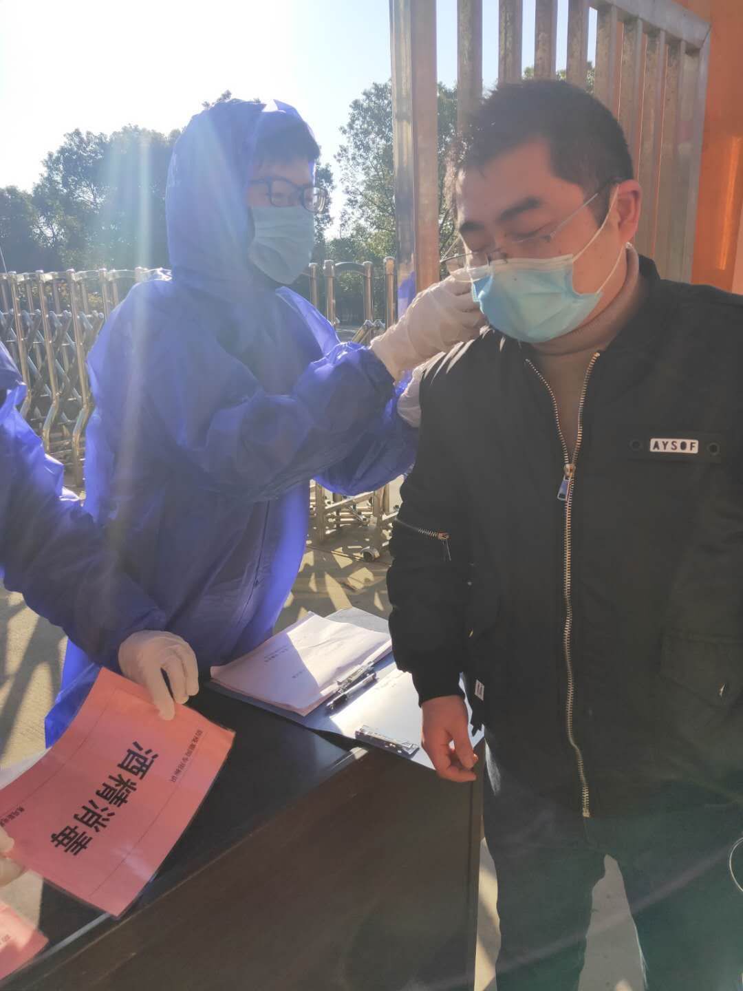 2020年2月18日,一個(gè)陽(yáng)光明媚的日子。歷經(jīng)前期的精心準(zhǔn)備,奧瑪斯公司迎來(lái)了初批22名復(fù)工員工的到來(lái)。按照““新冠肺炎防控預(yù)案細(xì)則”要求,所有進(jìn)入廠區(qū)的員工都得經(jīng)過(guò)嚴(yán)格的體溫監(jiān)測(cè)、領(lǐng)取一次性醫(yī)用口罩等環(huán)節(jié),并經(jīng)確認(rèn)符合要求后才準(zhǔn)入(見下圖所示)。